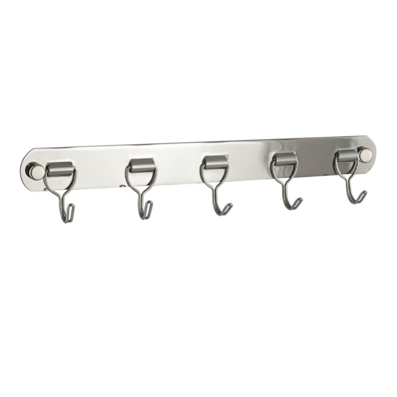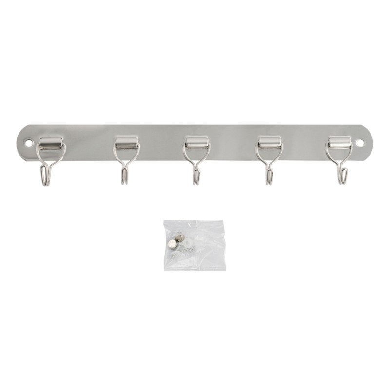 Вешалка - держатель для принадлежностей, металлический, хромированный, с пятью крючками.