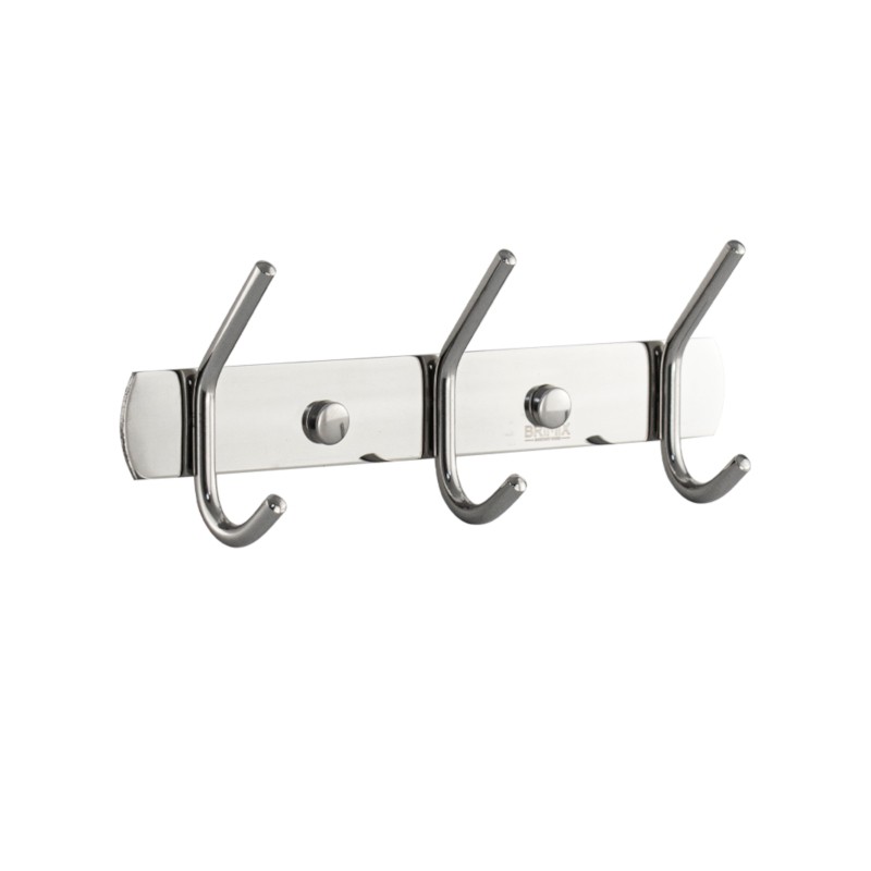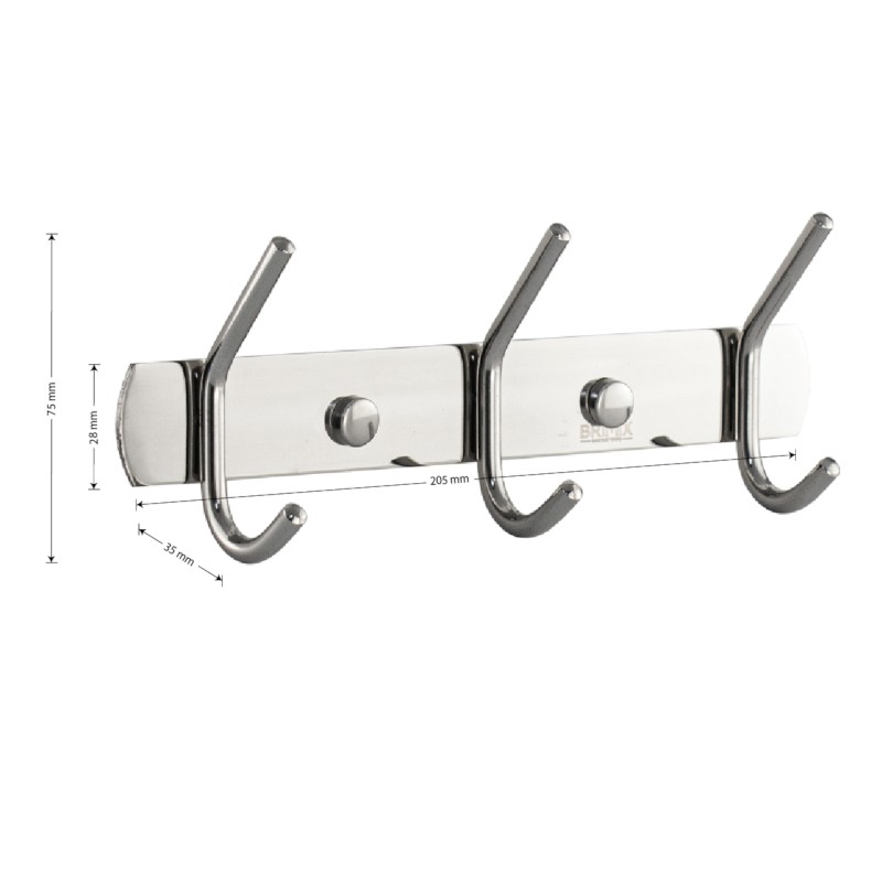 Вешалка - держатель для принадлежностей, металлический, хромированный, с тремя двойными крючками.