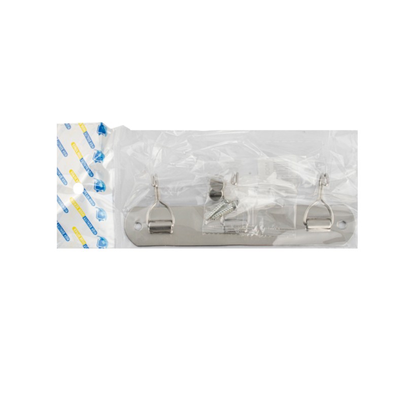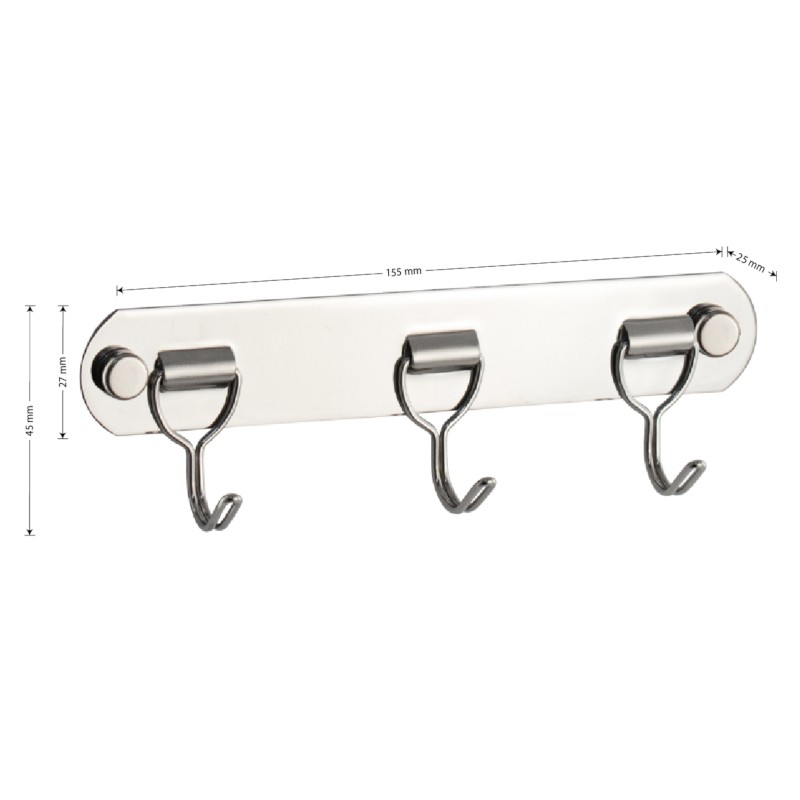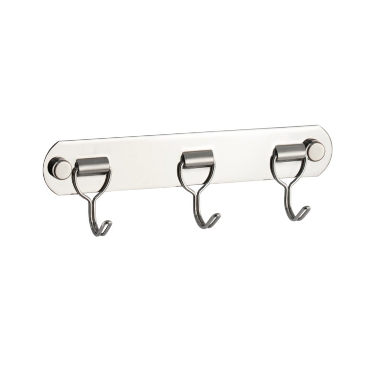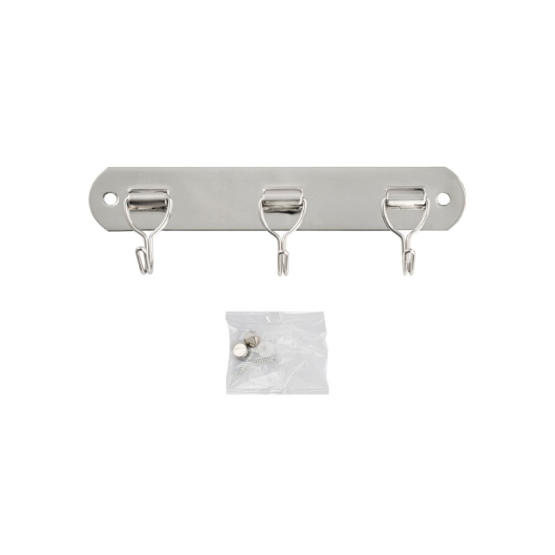 Вешалка - держатель для принадлежностей, металлический, хромированный, с тремя крючками.
