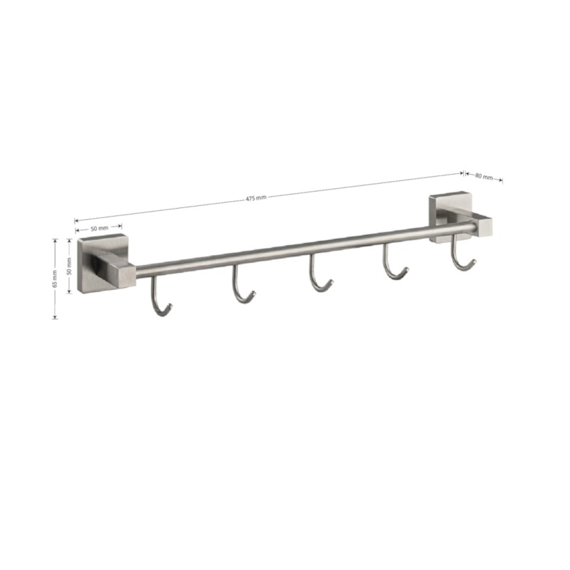 Держатель для полотенец металлический с пятью крючками.