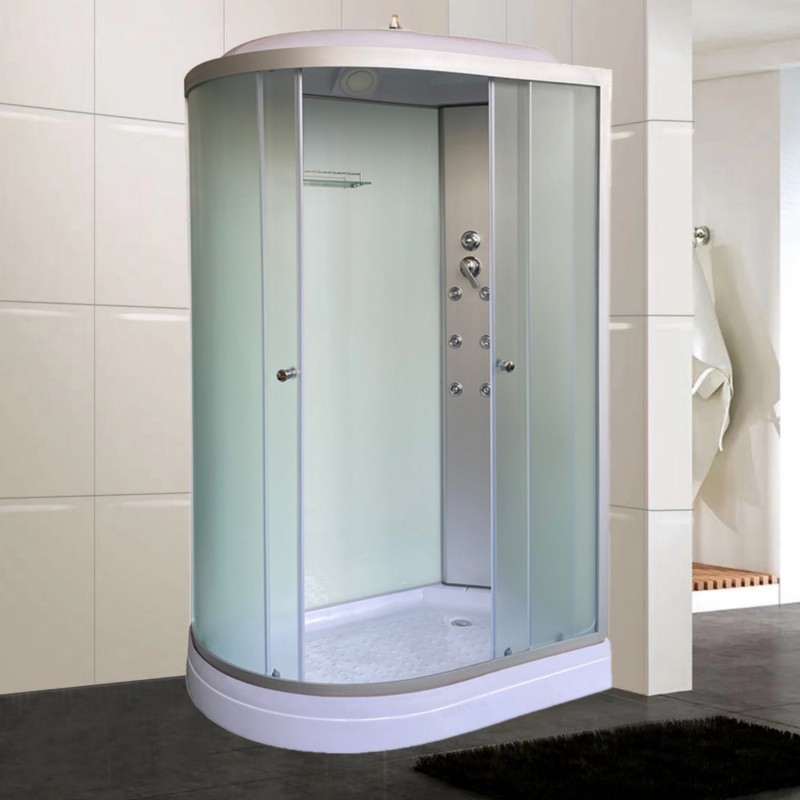 КОМПЛЕКТАЦИЯ тропический и ручной душ, полка стеклянная, вентиляционная решетка, смеситель 3 режима, гидромассаж 6 форсунок
