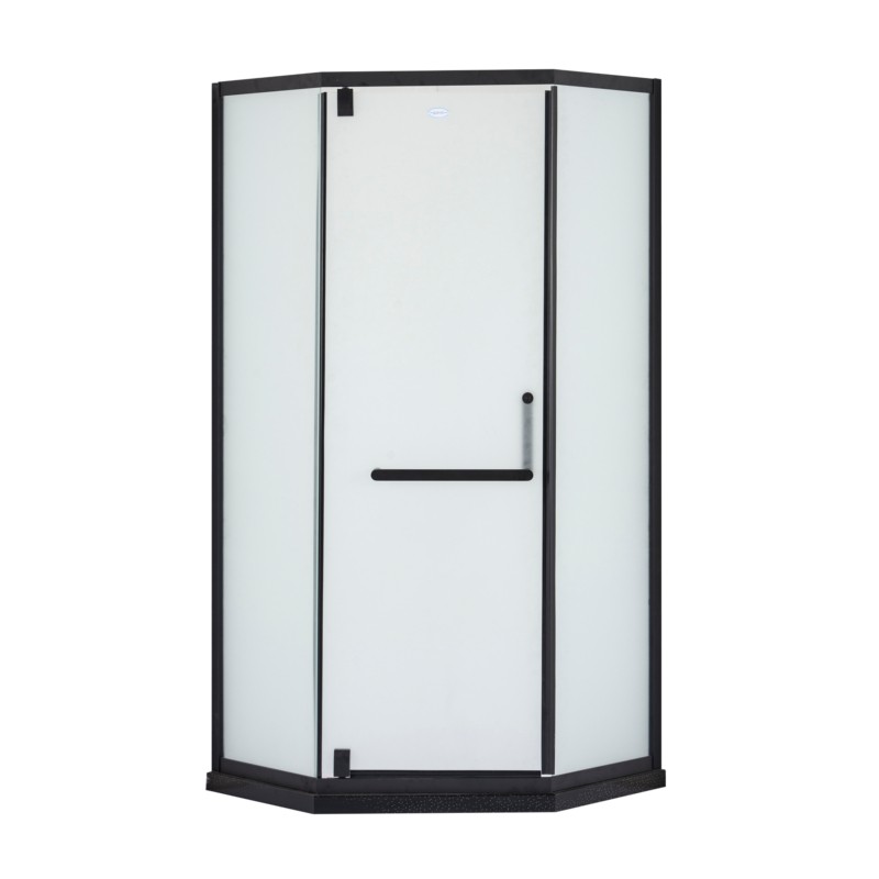 Стекло 6 мм, матовое. Профиля и дуги из нержавеющей стали чёрного цвета.