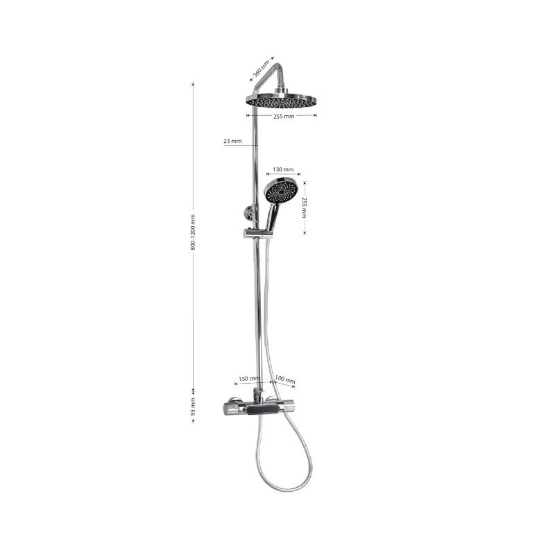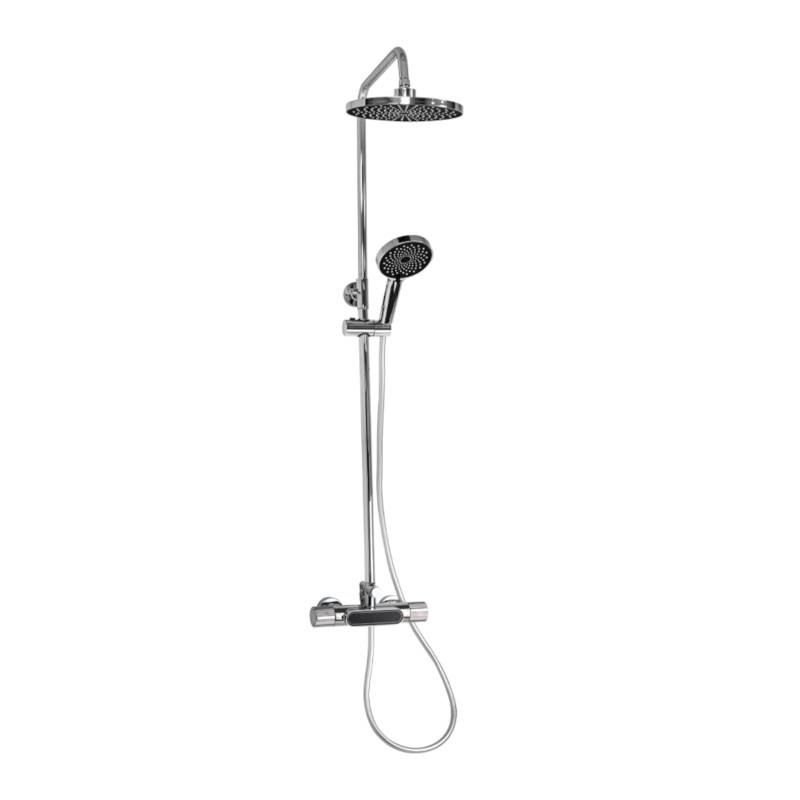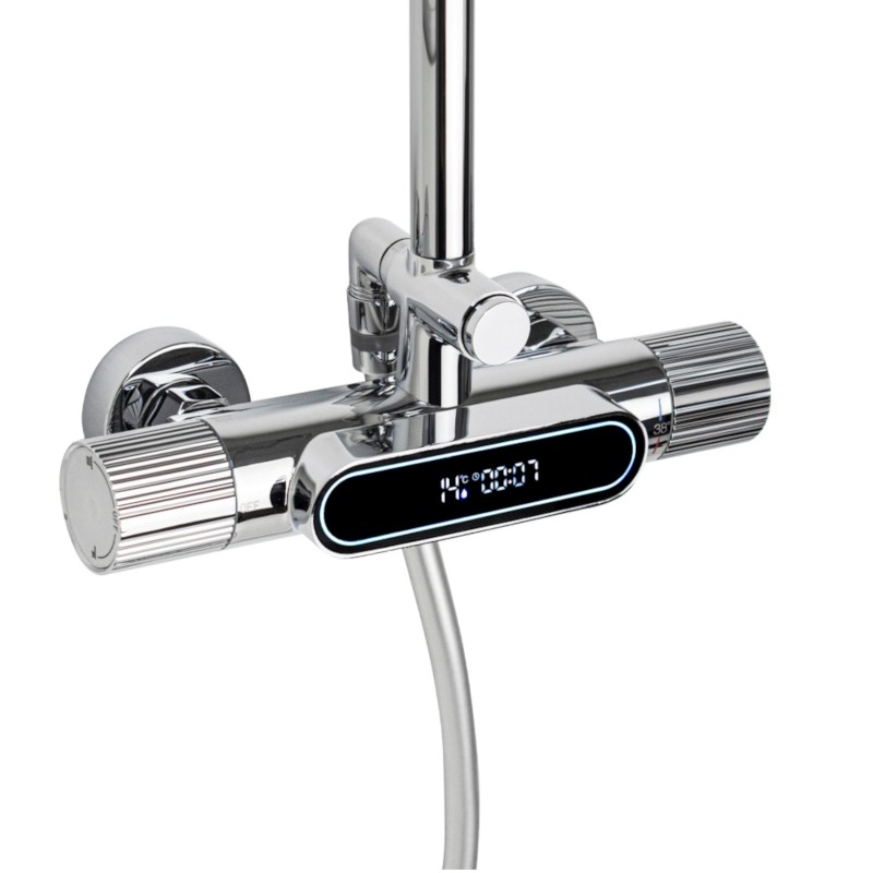 Смеситель термостатический с дисплеем + стойка душевая телескопическая "тропический душ" – надежное сантехническое оборудование.