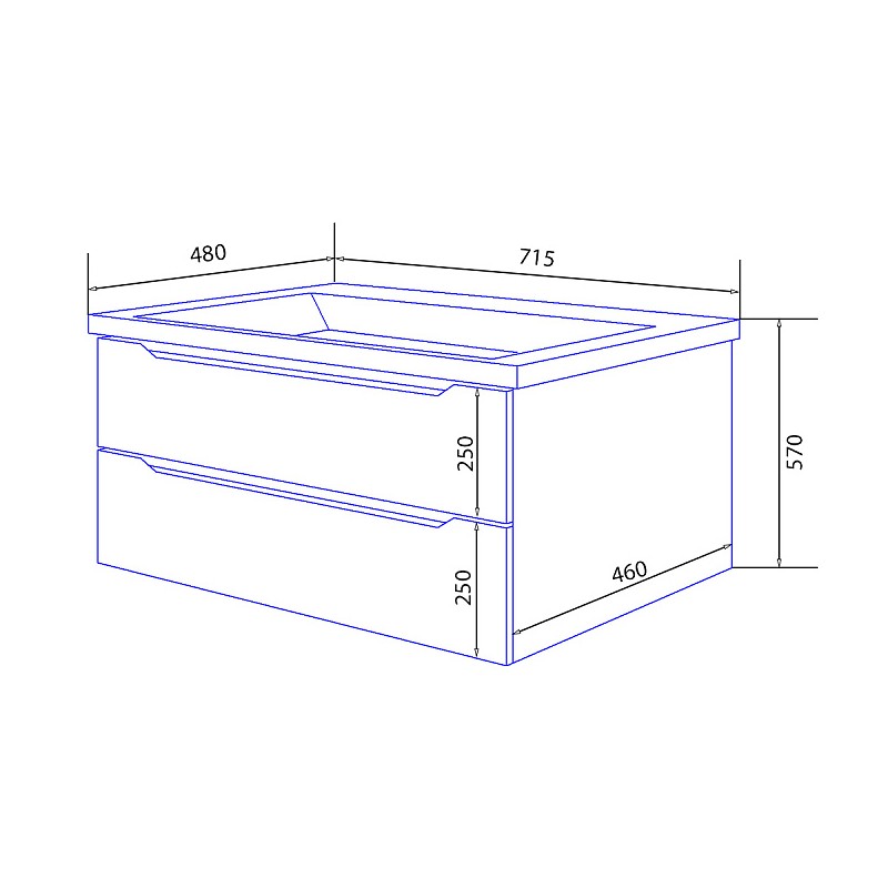 Тумба в собранном виде, подвесная с 2 выдвижными ящиками.