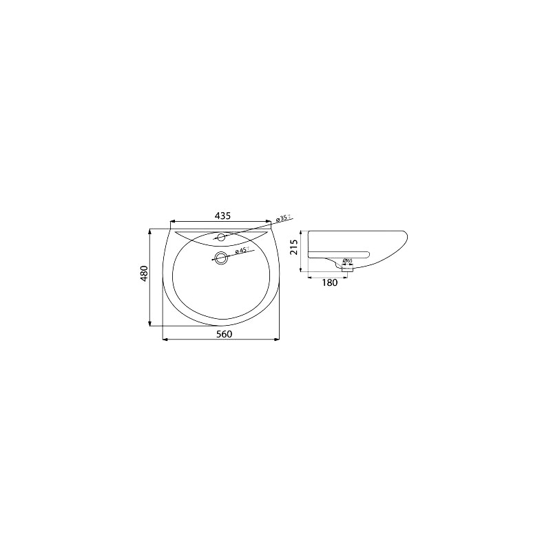 Раковина Оптима - умывальник Оптима второй величины с отверстием под смеситель и переливом.