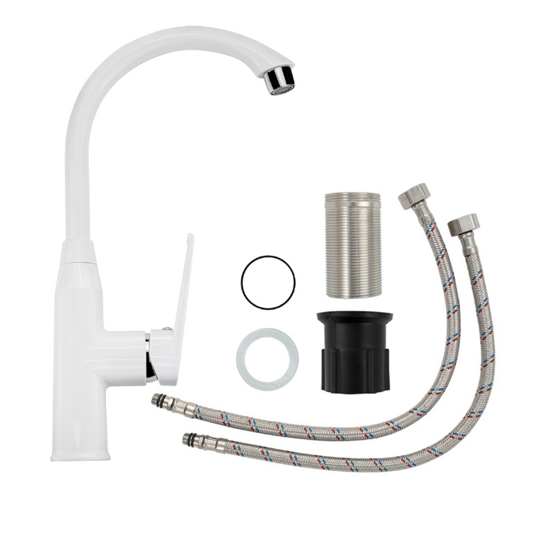 В комплекте паспорт, корпус с изливом, пластиковая подводка с латунными штуцерами 1/2, крепеж, набор прокладок.