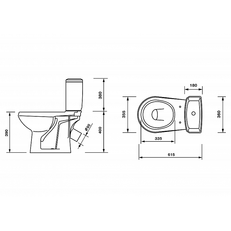 - Размер бачка (ШxДxВ), мм375х165х335
