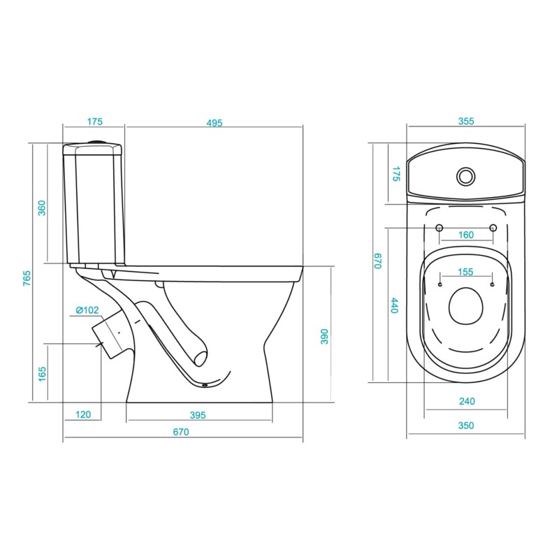 Унитаз-компакт Santek Алькор с диагональным выпуском, стандарт- 2 реж., дюропласт, антивсплеск, 1WH302140