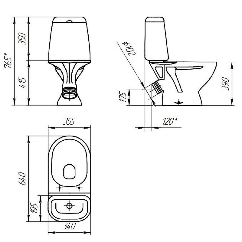 Габариты - 355х765х640 мм