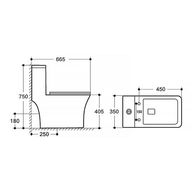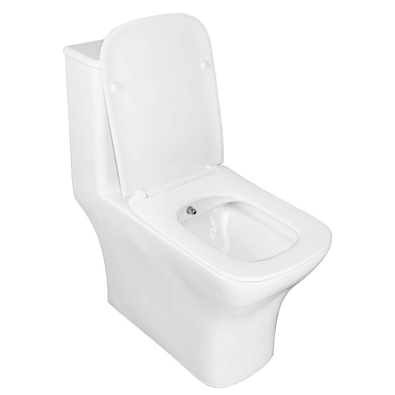 Унитаз моноблок с функцией биде Azario Lodi 350х665х750 напольный, безободковый, горизонтальный слив, сиденье дюропласт микролифт (AZ-8617B)
