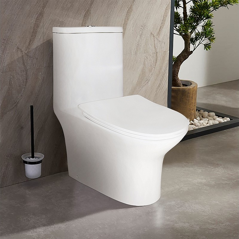 Унитаз-моноблок с функцией биде AZARIO Sente 375х665х785 напольный, безободковый, горизонтальный слив, сиденье дюропласт микролифт (AZ-8614B)