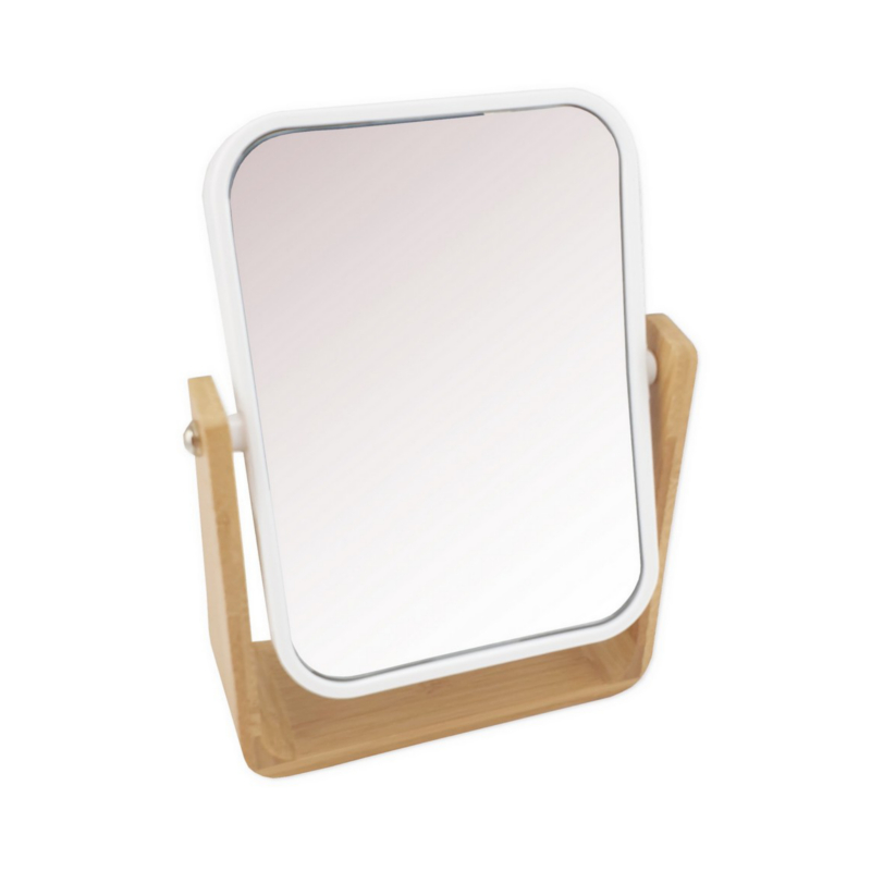 Зеркало косметическое настольное БЕЛОЕ, основание из бамбука