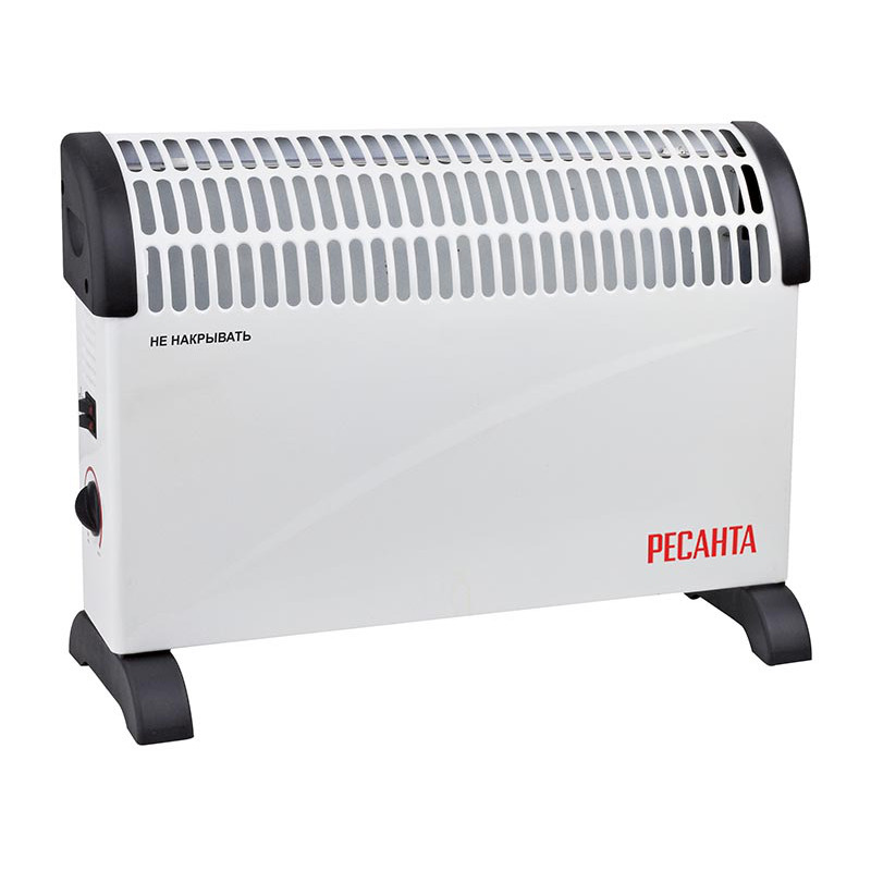 Электрический конвектор РЕСАНТА ОК-1000С для обогрева помещений. Состоит из нагревательной части, заключенной в нижней части корпуса со щелеобразными отверстиями снизу и жалюзи в верхней части. Данная конструкция даёт возможность воздуху беспрепятственно проходить внутри конвектора,
