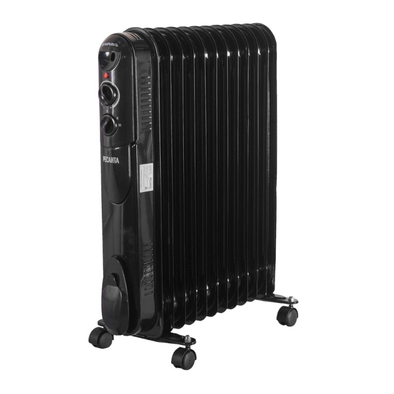 Масляный радиатор Ресанта предназначен для обогрева воздуха и создания комфортной атмосферы в холодное время года. В металлическом корпусе находится масло, нагреваемое до высокой температуры при помощи нагревательного элемента. Далее радиатор отдает тепло помещению. Масляный радиатор оснащен термостатом, что позволяет ему автоматически поддерживать в помещении заданную пользователем температуру. Существенным плюсом является и то, что он обладает низкой температурой корпуса, благодаря чему практически не выжигает кислород в помещении.