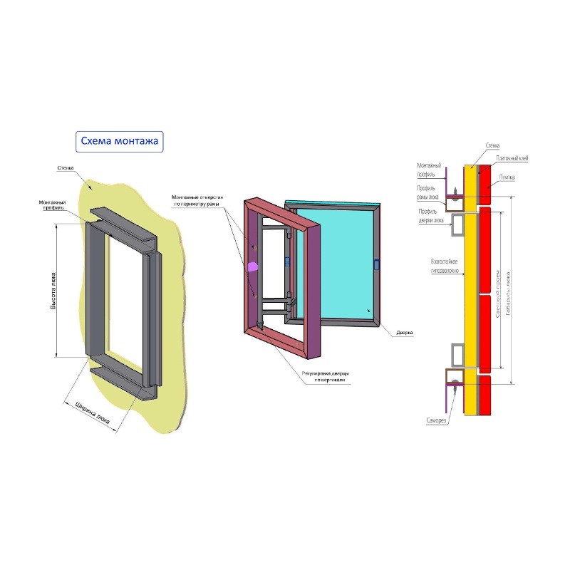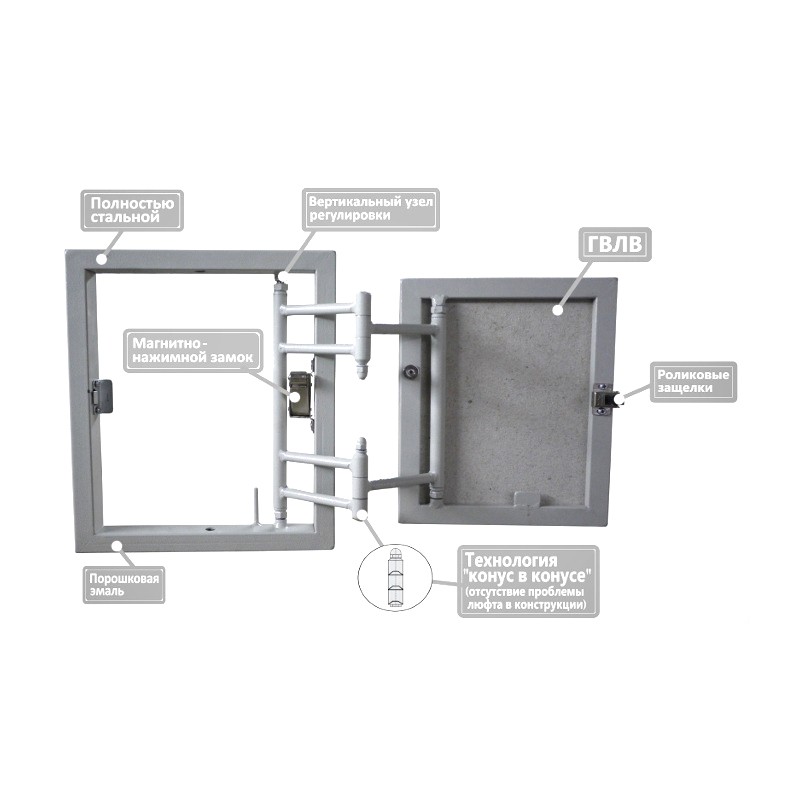 дверка люка изготовлена также из стального профиля и в сочетании с панелью ГВЛВ делает ее жесткой и прочной;