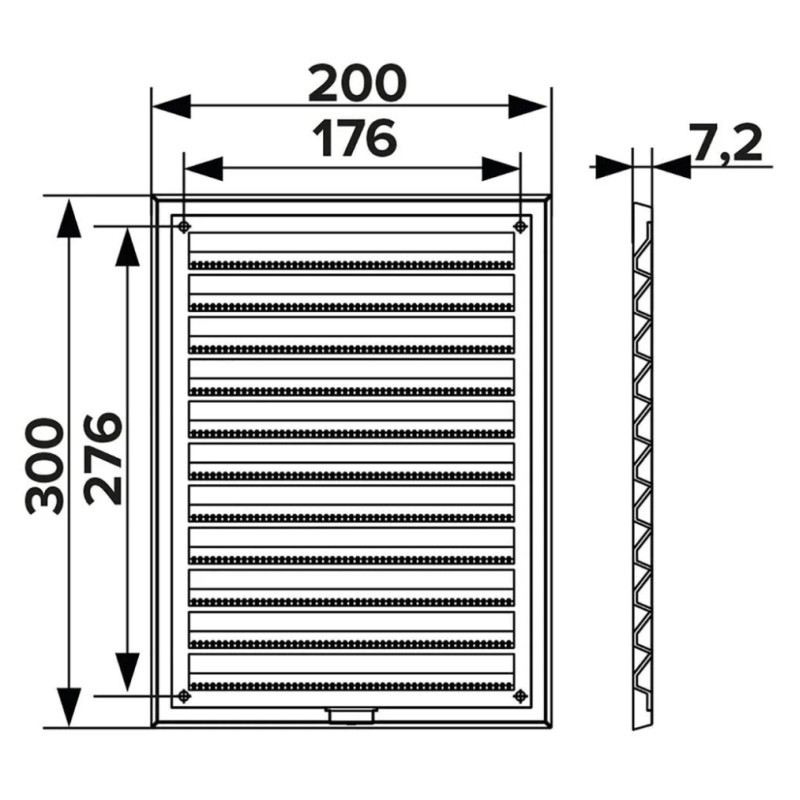 Решетка предназначена для использования в приточно-вытяжной системе вентиляции. Изготовлена из качественного пластика. Конструкция состоит из двух частей: рамы и жалюзи с пластиковой сеткой. Решетка разъединяется путем отщелкивания специального пластикового замочка с помощью отвертки. Это значительно упрощает ее ревизию.