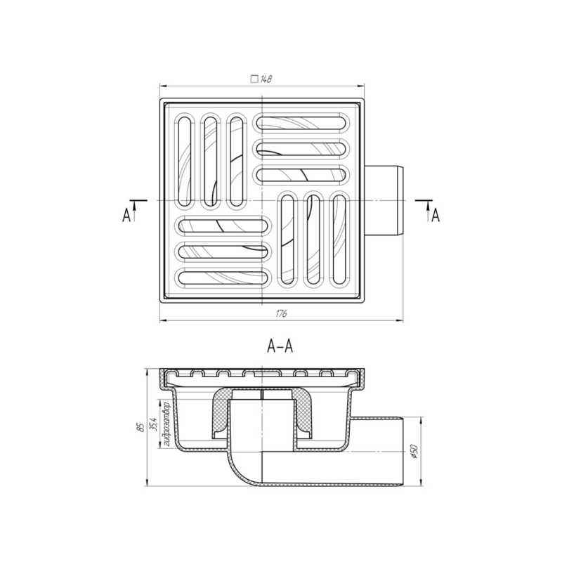 • Точечный горизонтальный сливной трап с гидрозатвором TA5112
