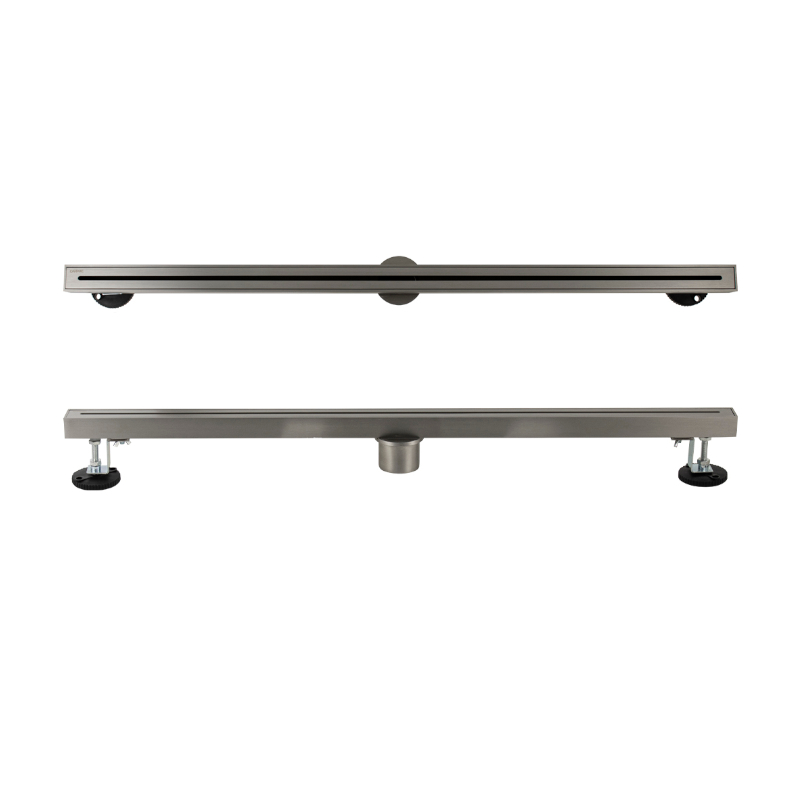 Душевой сливной трап из нержавеющей стали, линейный, вертикальный с сухим затвором, крышка щелевая, цвет сатин.