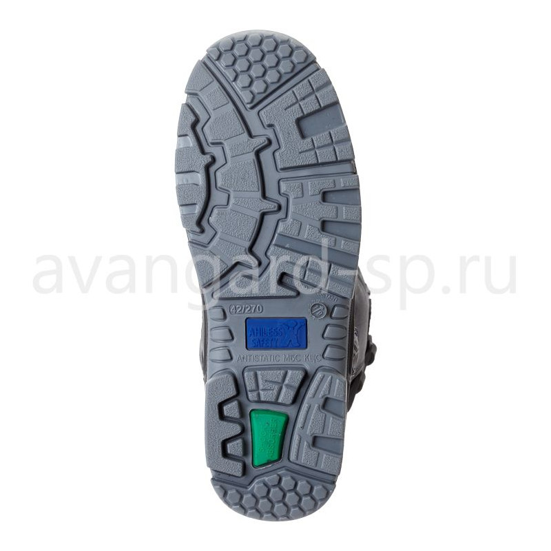 - двухслойная подошва выполнена из ПУ/ТПУ, обладает стойкостью к воздействию масел, сырой нефти, иных нефтепродуктов, растворов кислот и щелочей, нетоксичной и взрывоопасной пыли,