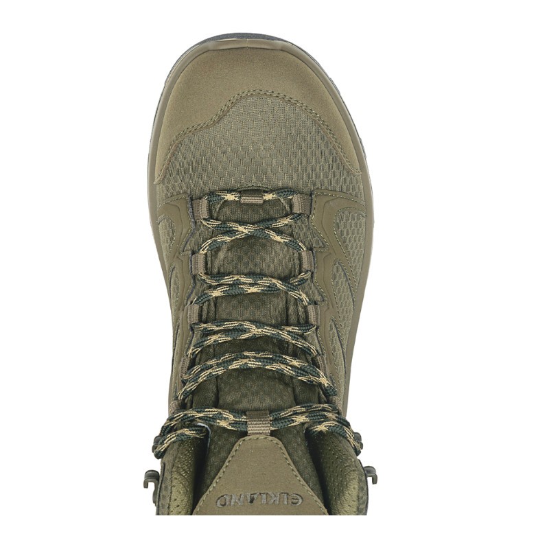 Облегченные треккинговые ботинки ТМ «Elkland» с интересным дизайном верха в виде пчелиных сот. Внутри мембрана 10К/10К для поддержания комфортной температуры внутри ботинка в любую погоду во время активной эксплуатации. Конструкция глухого клапана, препятствует проникновению воды и посторонних предметов внутрь обуви. Дизайн колодки разработан с учетом анатомических особенностей строения стопы, что создает правильную идеальную посадку на ноге и ощущение комфорта во время ношения. Уникальный 3 слойный дизайн подошвы. Первый слой с завышенными боковыми ребрами обеспечивает поддержку стопы, фиксирует стопу в правильном положении, тем самым снимая нагрузку и предотвращая от травматизма. Второй менее плотный слой подошвы обеспечивает эффективную амортизацию. Третий слой резиновый со специально разработанным дизайном, обеспечивает защиту от скольжения и хорошую износостойкость при активной эксплуатации. Вкладная стелька дышащая, абсорбирующая влагу, дезодорирующая. Рекомендуемый температурный режим: от -5 до 10г.
