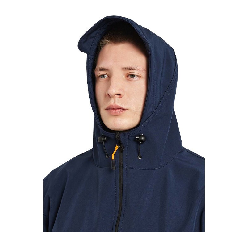 - капюшон с козырьком и кулиской по лицевой части со шнуром резинкой и фиксаторами, утяжка кулисы капюшона происходит через нагрудные карманы;