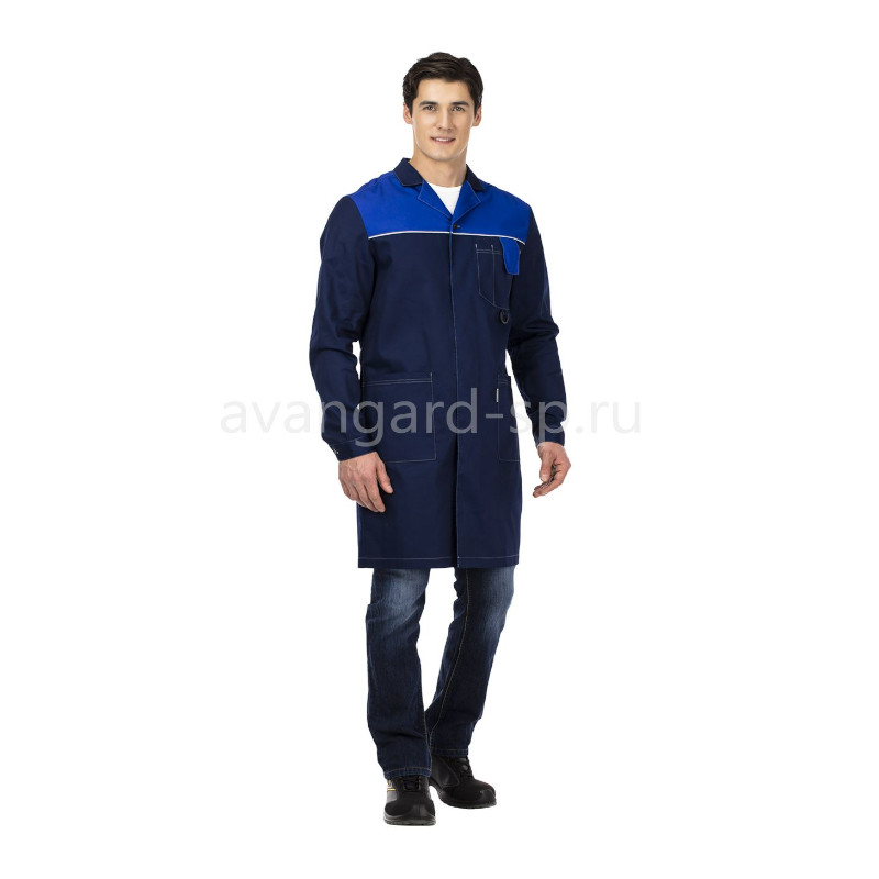 Халат мужской с центральной супатной застежкой на пуговицы.