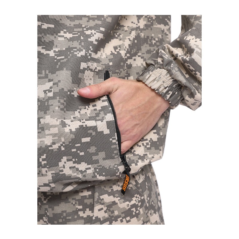 Камуфлированный универсальный летний костюм для охоты, рыбалки и активного отдыха. Состоит из куртки с капюшоном и брюк.