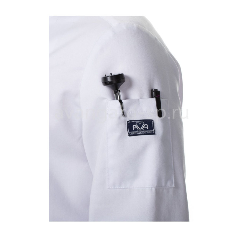 На левом рукаве накладной карман с двумя отделениями для пинцета (градусника) и ручки.