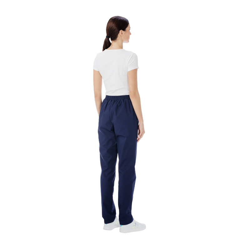 Брюки умеренного объема на резинке по поясу. На передних половинках верхние боковые карманы.
