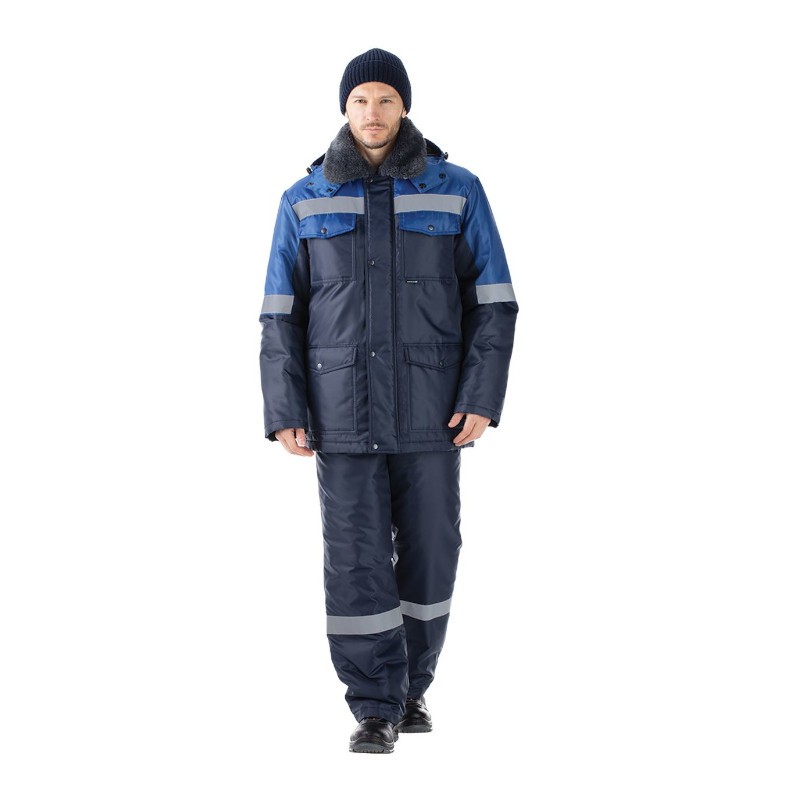 Для обеспечения безопасности в условиях плохой видимости по верху и на рукавах куртки, по низу брючин полукомбинезона расположены широкие световозвращающие полосы.