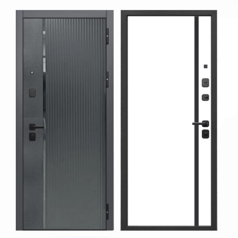 - Внешнее покрытие: МДФ панель 8 мм Карбон/Сатин с вставкой из нержавеющей стали