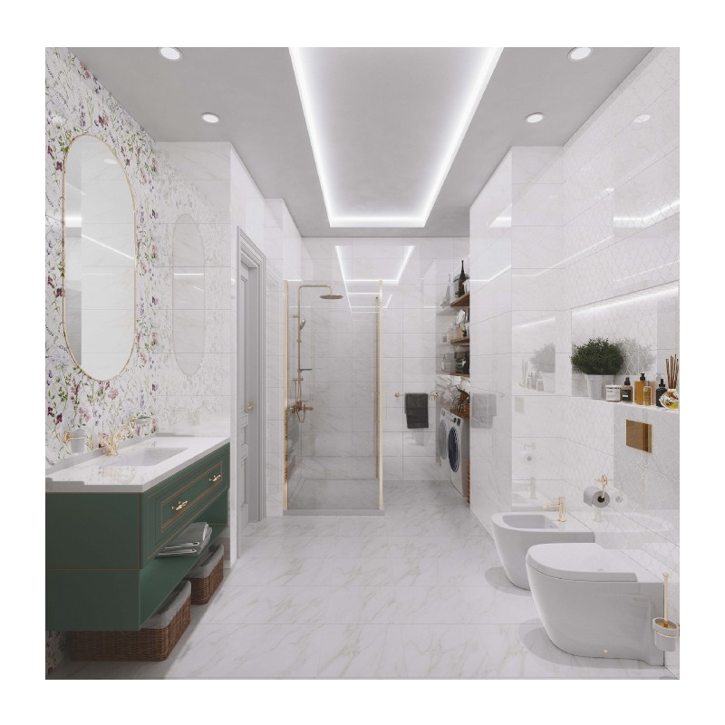 Коллекция керамической плитки "Луизиана" была разработана для легких, безмятежных, наполненных воздухом интерьеров. Светлую основу "под натуральный камень" дополняют глянцевые детали, которые визуально расширяют пространство за счет неповторимой игры бликов. Декоративная вставка - панно с нежным цветочным узором, украшенная люстром, люминором и жемчужной ветрозой, вносит в обстановку ненавязчивый романтичный акцент. Для формирования классического светлого интерьера отлично подойдет штамп-колона в сочетании с базовой плиткой и рельефным бордюром.