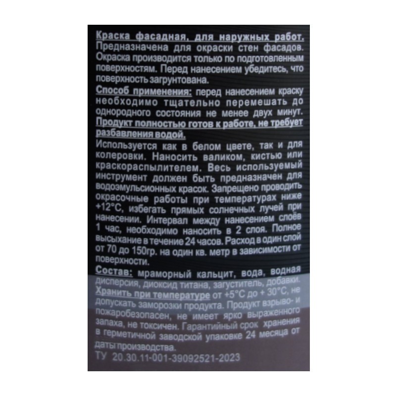 ОБЛАСТЬ ПРИМЕНЕНИЯ: Краска водно-дисперсионная интерьерная, супербелая, матовая для фасадных работ.