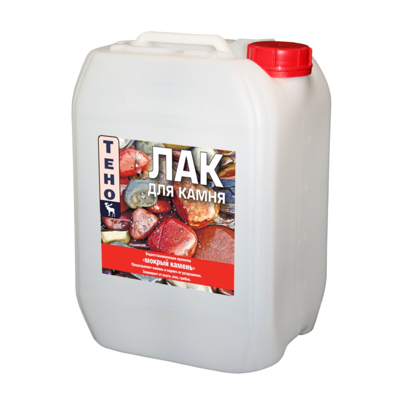 Лак на водной основе с эффектом "мокрого камня" (водоотталкивающая пропитка) предохраняет камень и кирпич от разрушения, защищает от влаги, мха, грибка.