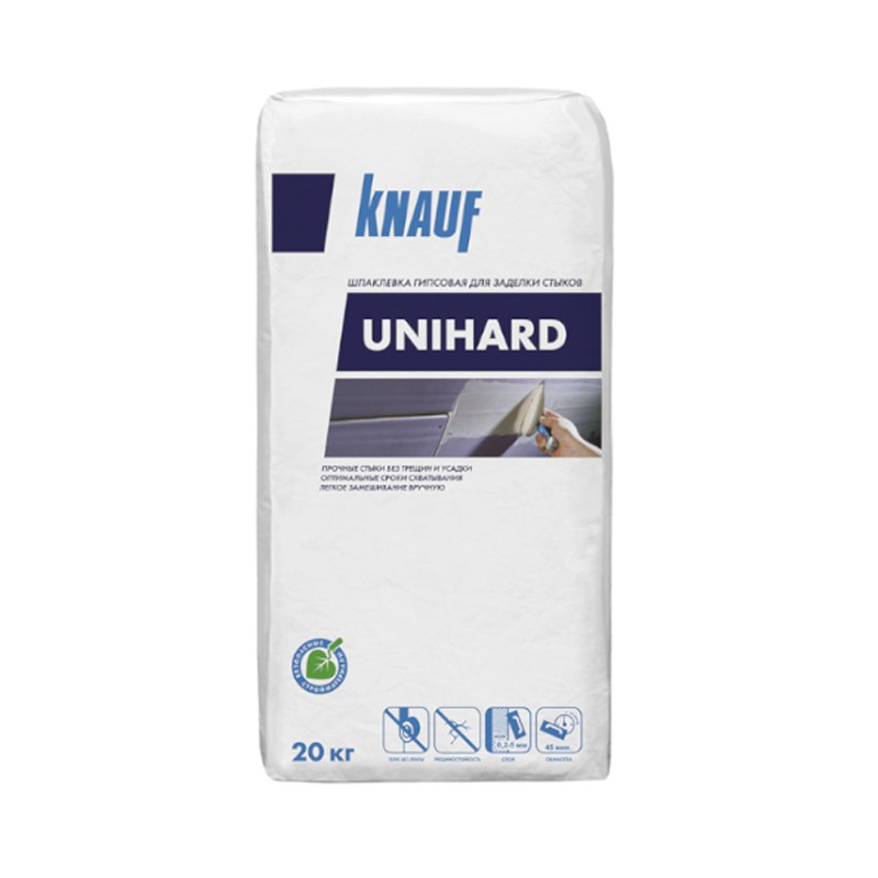 Область применения:КНАУФ-Унихард — сухая шпаклевочная высокопрочная смесь для заделки стыков гипсокартонных и гипсоволокнистых листов и сплошного шпаклевания поверхности.