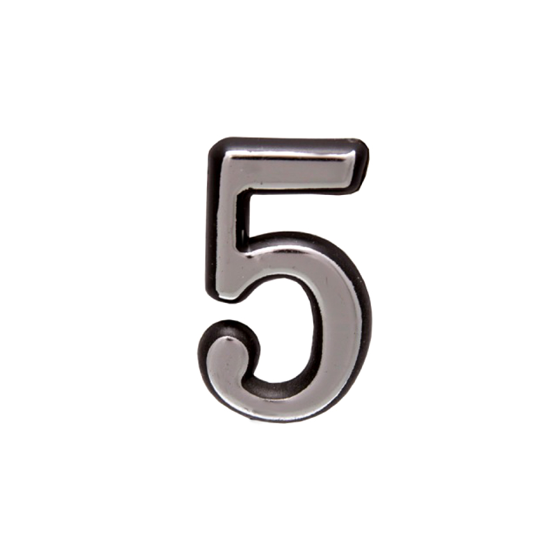 Цифра дверная БОЛЬШАЯ "5" хром на клеевой основе пластик* (АЛЛЮР)