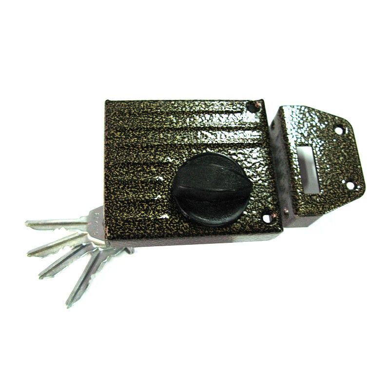 Предназначен для запирания деревянных дверей толщиной 35-45мм. Замок запирается ключом снаружи и ручкой изнутри. Устанавливается на левые и правые двери. Замок имеет блокировку которая предотвращает открывание дверей снаружи ключом. Замок изготавливается с полимерным покрытием. Секретность 2 класс, число секретов не менее 15 000.