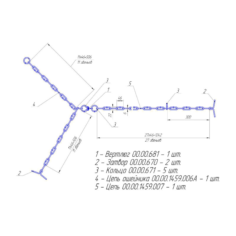 Наименование : ИПК 00.00.1459.000 Цепь для привязи скота в стойле 3-х концевая с вертлюга ТИП-3