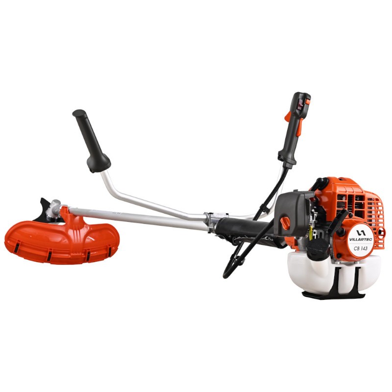 - Бензокоса Villartec CB R143 имеет комбинированный защитный кожух, который можно использовать с ножом для травы или триммерной головкой. Защитный кожух из прочного пластика предохраняет оператора от возможного попадания летящих из-под режущего элемента предметов.