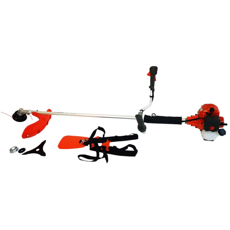 - Удобная регулируемая велосипедная рукоятка и ременная оснастка на оба плеча, которая поставляется в стандартной комплектации, снижает нагрузку на руки и спину и обеспечивает комфортную работу без переутомления в течение длительного срока. Для повышения прочности рукоятка прикреплена к штанге литым хомутом.