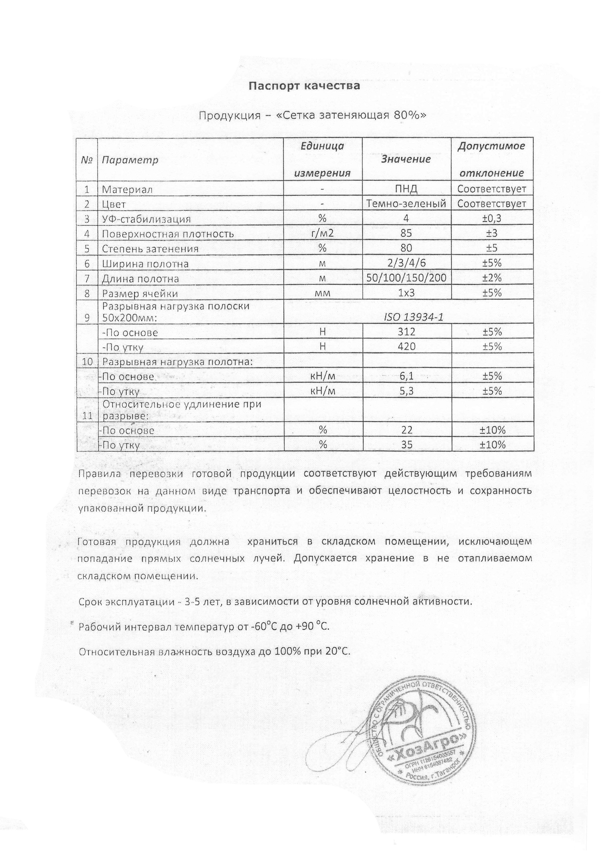 Паспорт качества