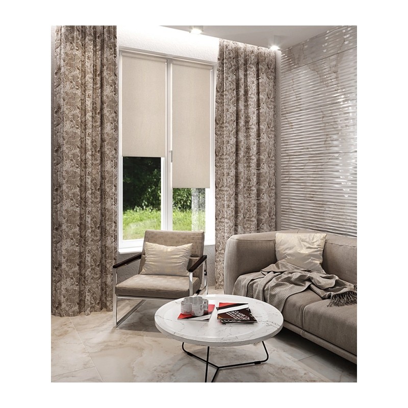 Эксклюзивная коллекция рулонных штор Ривера с абстрактным рисунком. Плотная жаккардовая ткань с тонкой люрексной нитью.
