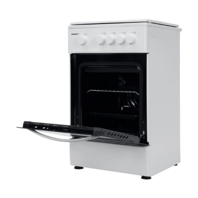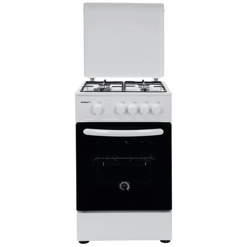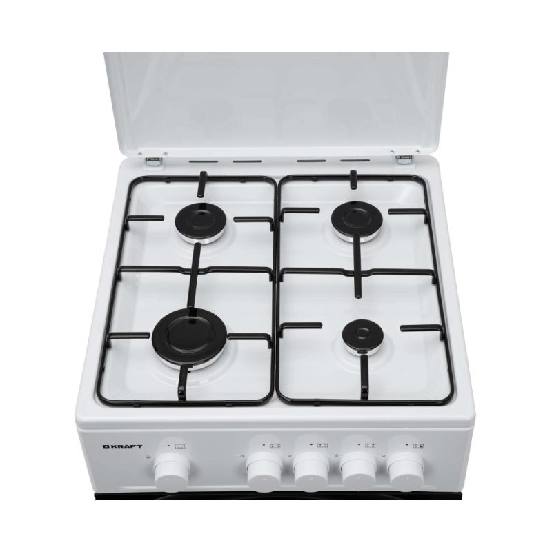 Газовая плита Kraft KF-FSK5301GW в белом цвете сочетает в себе функциональный дизайн и простоту управления. Данная модель оборудована четырьмя газовыми конфорками и газовым духовым шкафом объемом 58 литров, оснащенным системой газ-контроля. Уровень нагрева духовки определяется с помощью термометра. В комплект входит набор съемных жиклеров для перевода плиты на необходимое газоснабжение.