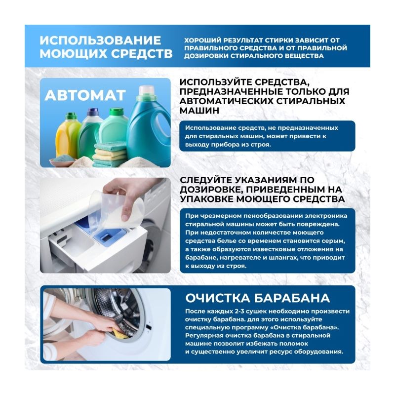 Автодозирование средств, Блокировка от детей, Отсрочка старта