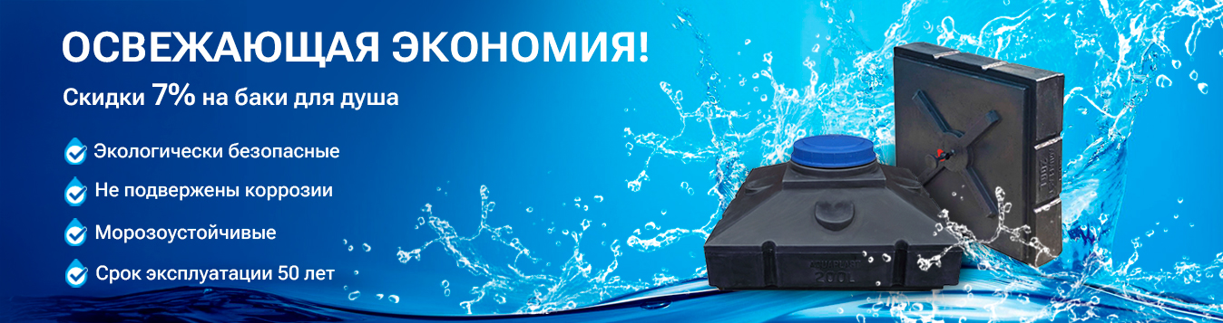 - При покупке бака для душа, участвующего в Акции, предоставляется скидка до 7%;