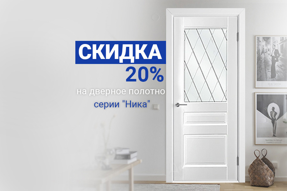 - При покупке дверного полотна серии «Ника» торговой марки RUMAX предоставляется скидка до 20%;